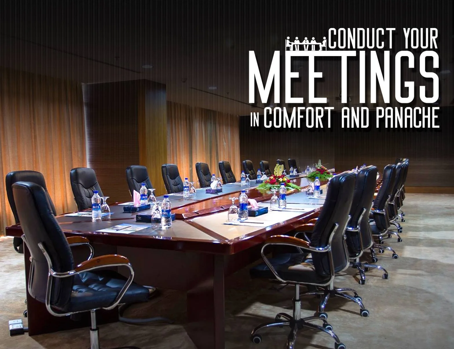 Waves meeting rooms with the capacity of maximum 21 participants decorated & equipped for the executive board meetings with the board room set up with multimedia and projector Suitable for any official training, discussion session or board meeting.